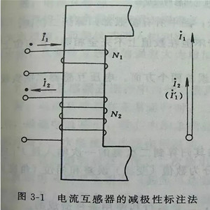 下面圖中簡單示意了電流互感器減極性標注的方法,其定義是:當同時從電流互感器的一、二繞組的同極性端子通入相同方向的電流時,他們在鐵芯中產(chǎn)生的磁通的方向相同。當一次繞組從標“·”號端子通入交流電流時,則在二次繞組回路中感應(yīng)的電流應(yīng)從非標“·”號端子流向標“·”號的端子,如果我們從兩側(cè)同極性端(兩側(cè)標“·”號端子或兩側(cè)非標“·”號端子)觀察時,則一、二次電流的方向相反,所以,我們稱這種標記為減極性標記。