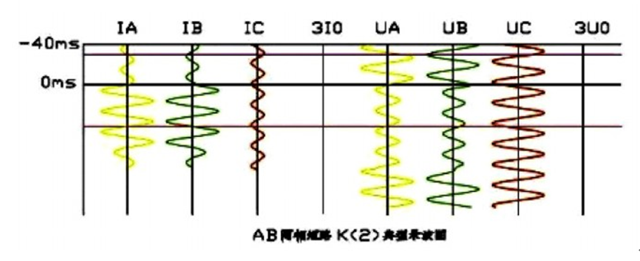 兩相短路故障錄波圖特點: