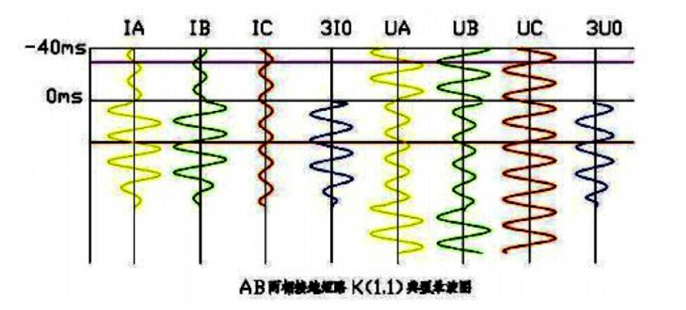 兩相接地短路故障錄波圖特點: