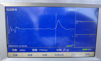 1、使用測距儀低壓脈沖測量,電纜全長366米。如圖所示